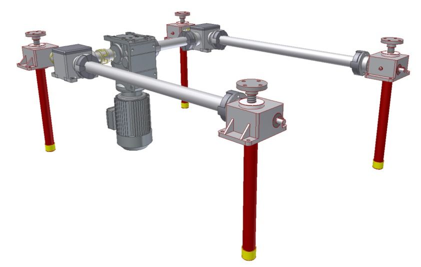 Skruvdomkraftssystem kan kombineras i grupper, ofta sammankopplade med axlar eller motorer, för att lyfta flera punkter samtidigt. På så sätt kan en hel konstruktion höjas eller sänkas parallellt, utan att spänningar uppstår i materialet.